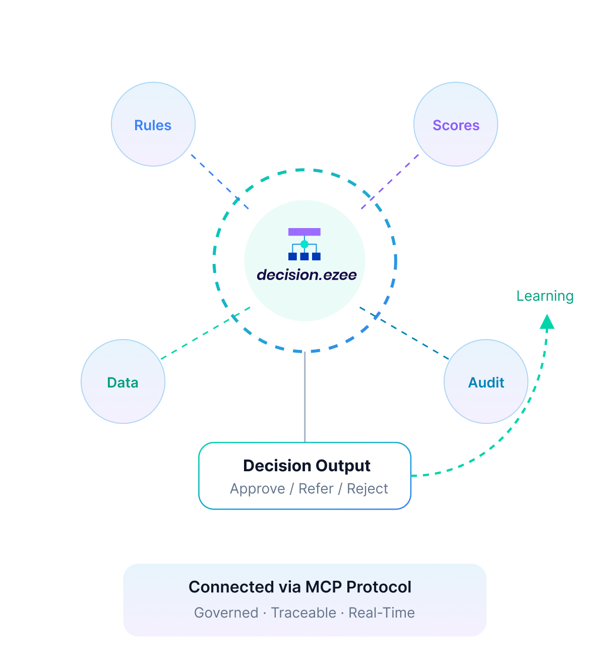 MCP exposes rules as AI-callable tools. Run decisions via plain-language requests.