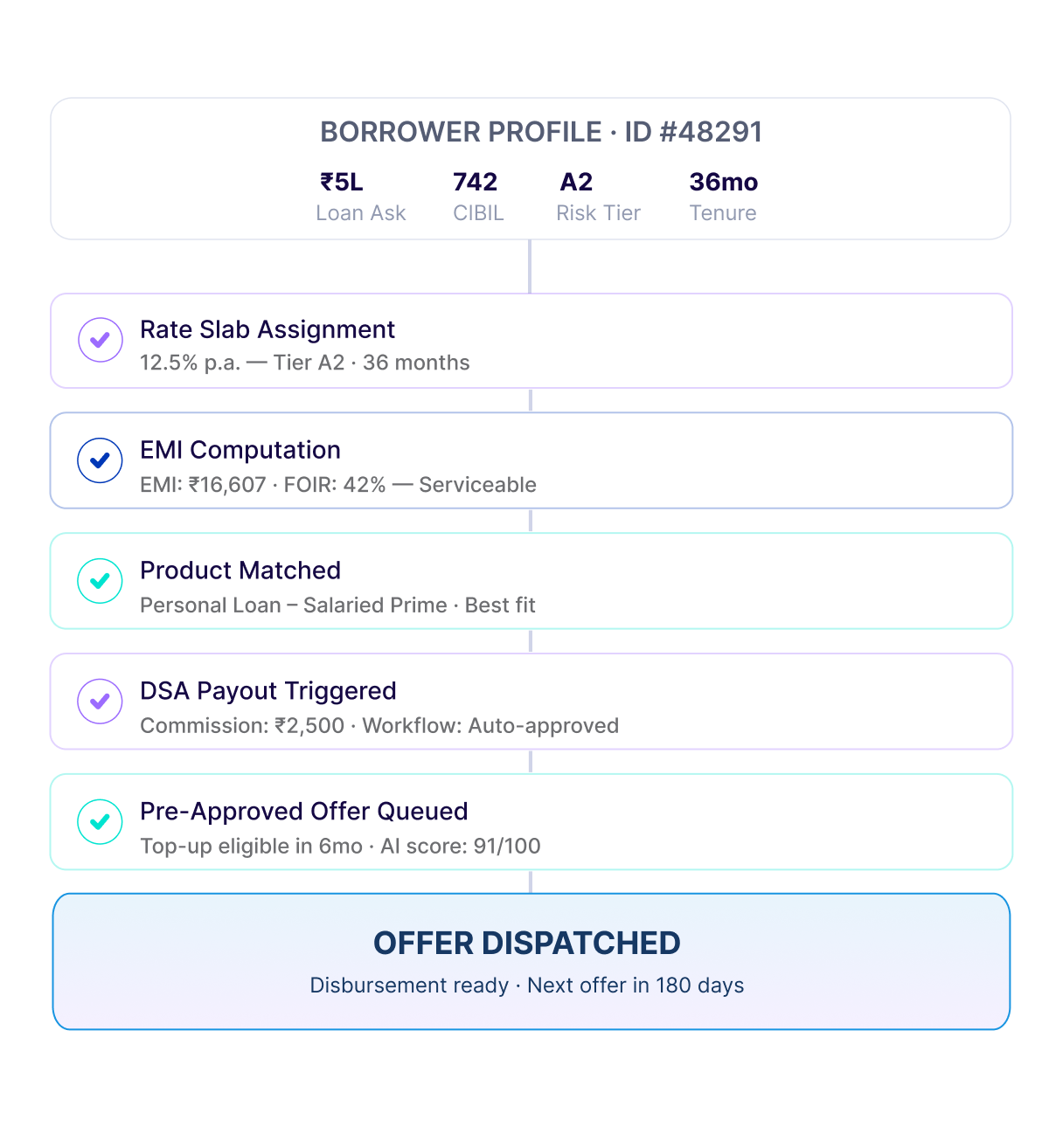 Auto-match borrowers to best-suited products by profile and eligibility.