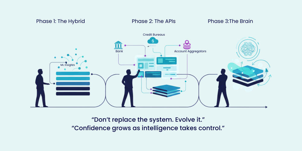 Phase 2 (The APIs): Integrate real-time data APIs. Connect your core banking system to external data sources (Account Aggregators, credit bureaus) to feed the engine with live context informing Accounts Receivable Automation and Debt Collection Strategies execution.