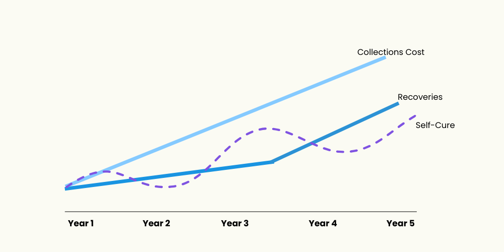 Year 4-5: Competitive pressure and rate pressures compress lending margins. The board asks: “Why are collections costs so high?” Collections leadership responds: “We are recovering more dollars.” No one asks the hard question: “What percent of recovery is incremental to our collection effort versus naturally occurring self-cure?”